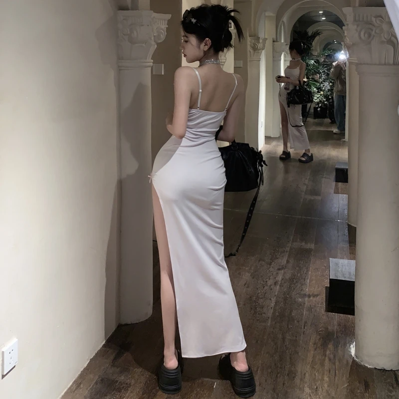 In Stock Women Sleeveless Solid Color Sexy Maxi Bodycon slip Casual Long Summer Dress